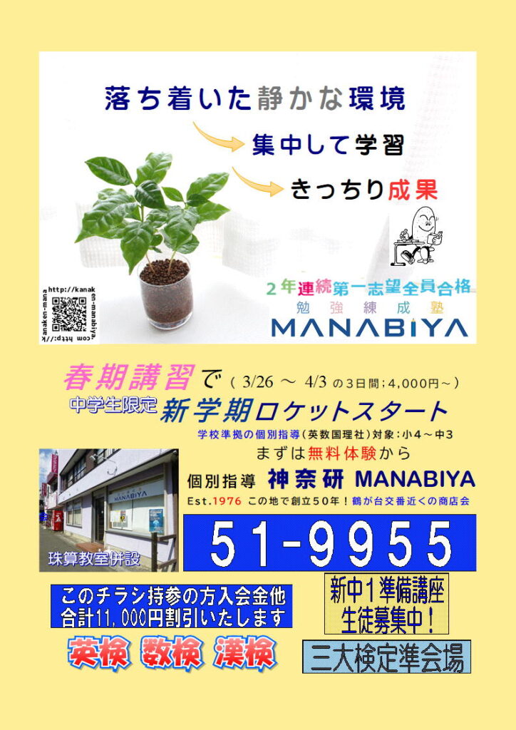 こんにちは、茅ヶ崎で生まれ育って半世紀、個別指導の学習塾「神奈研MANABIYA」の桑原です。